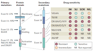 Vielleicht liegt es daran, das Ripretinib einen weiten Bereich der Exons angreift, whrend die klassischen ersten drei Medikamente überwiegend