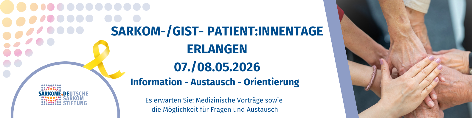 Die Patienten-Hilfe der Deutschen Sarkom-Stiftung bietet Ihnen Informationen über die Erkrankung sowie Tipps und Hilfen im Umgang damit. Ihre Fragen beantworten wir auch gerne im persönlichen Gespräch. Sie sind nicht alleine mit Ihrer Erkrankung!